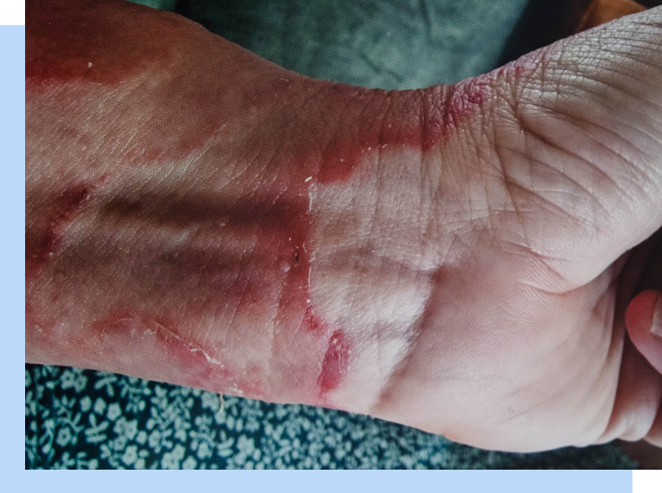 While moisturizers are commonly used, those containing lanolin or petrolatum may cause additional skin damage due to friction or high shear forces—particularly in highly compromised skin. Topical steroids can further thin the skin, potentially leading to complications like Cushing’s Syndrome. Other standard topical therapies, such as calcineurin inhibitors, can result in dangerously high systemic absorption when applied to defective skin.
